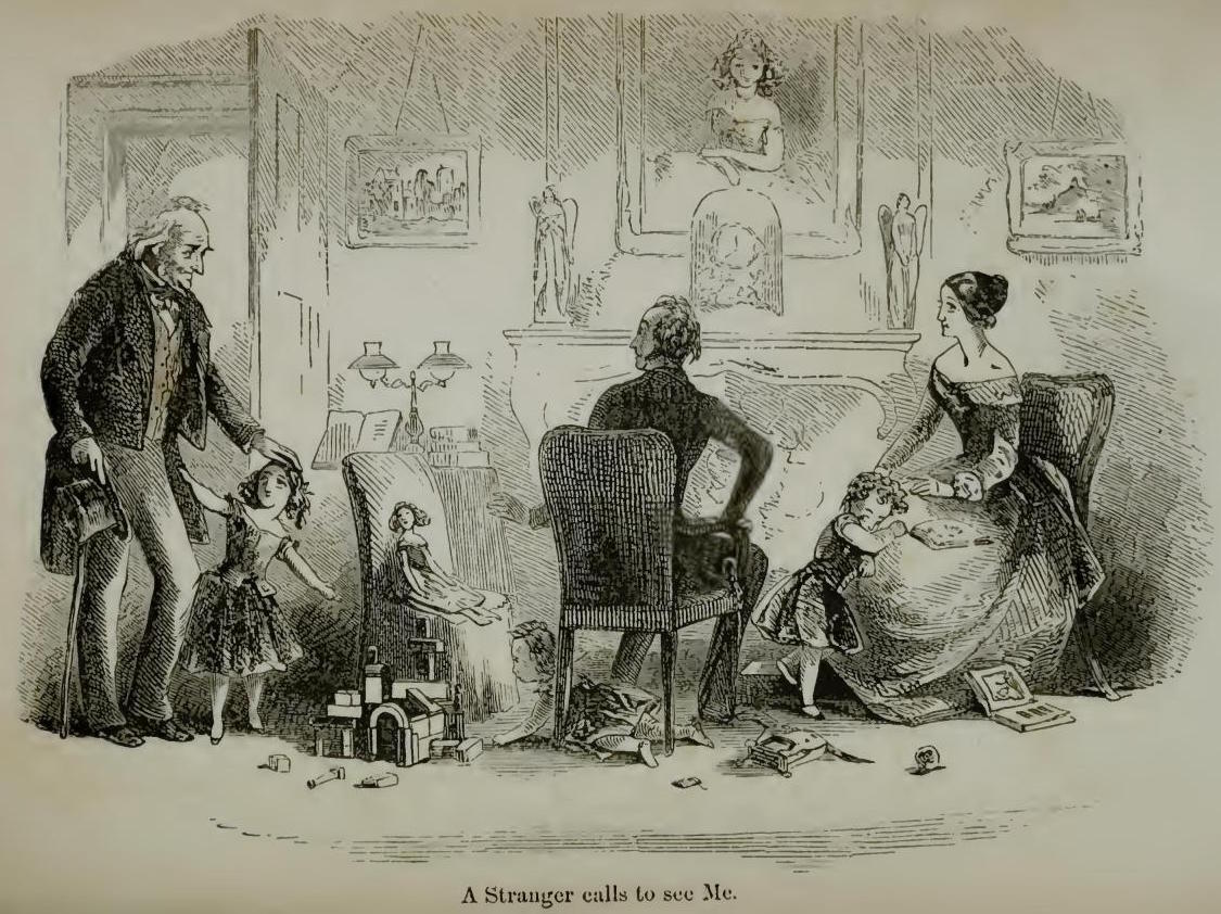 Looking at the characters represented by this pattern, it is striking that they are all male. While this may be due to the practical reason that women’s floor-length skirts could easily catch fire, it also suggests that it was mainly men who stood in such a prominent place in the house (see Korte 1997: 212 and Mahlberg 2013: 111-114), whereas women might be more likely to be sitting by the fire as in the image from David Copperfield.